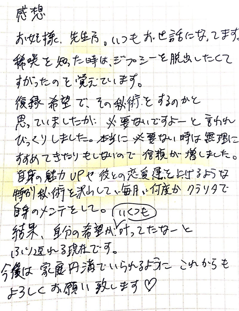即効性に定評があり、効果が顕著に現れるとの報告をいただいています。